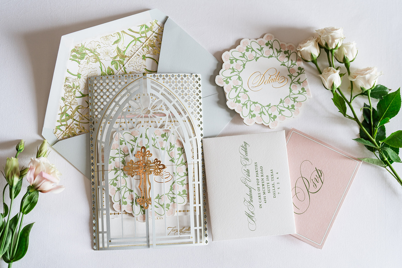 Recently, I designed suites for two very different weddings. The first is a more classic, traditional aesthetic with springtime colors and gold foil detailing. I love how timeless and refined it is, reflecting the tender, romantic ceremony of our clients. I’m very proud of this one.